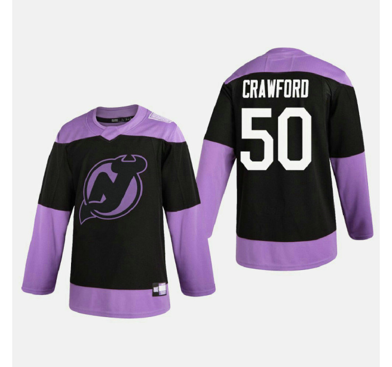 - Men's Devils Corey Crawford #50 2020 Hockey Fights Cancer Practice Black Jersey