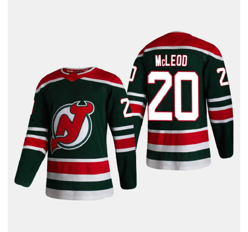 Elevate your game-day experience with the Men's New Jersey Devils Michael McLeod #20 2021 Season Reverse Retro Authentic Pro Special Edition Green Jersey, designed to mirror the intensity of on-ice battles. Built for dedicated supporters, this high-end jersey replicates the team's on-ice aesthetic with a sleek black base and bold striping. Featuring a tailored fit and lightweight construction, it incorporates strategic mesh inserts for breathability, ensuring comfort during high-energy moments. Emblazoned with Player's name and number in crisp team colors, this piece lets you showcase his pride effortlessly-whether you're in the arena or cheering from home.