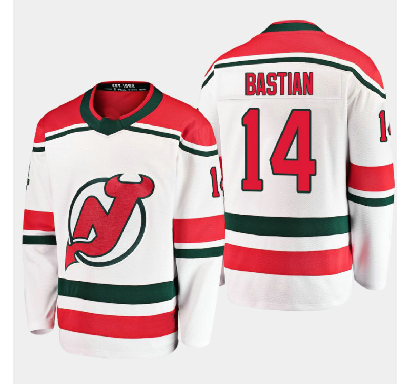 - Men's Devils Nathan Bastian #14 Alternate 2020-21 Breakaway Player White Jersey