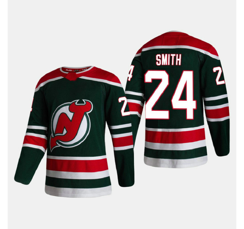 • Men's New Jersey Devils Ty Smith #24 2021 Season Reverse Retro Authentic Special Edition Green Jersey