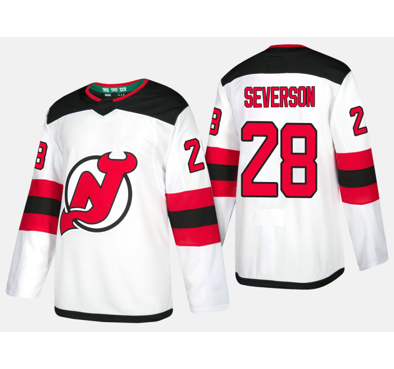 - Devils #28 Damon Severson Road Authentic Player White Jersey