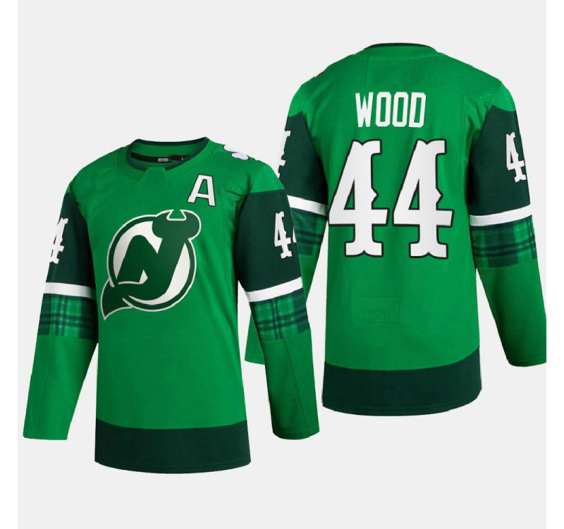 New Jersey Devils St Patricks Day Miles Wood Green Warm-Up Jersey