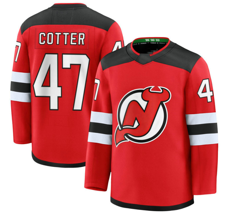 Upgrade your Youth New Jersey Devils #47 Paul Cotter Home Premium Red Jersey, meticulously crafted to mirror the team's on-ice intensity. This premium design features bold striping and crisp team branding, echoing the player iconic ice uniforms. Engineered with breathable mesh panels and a streamlined silhouette, it balances lightweight comfort and a modern fit, keeping you cool during high-stakes moments. Whether rallying at the Prudential Center or celebrating at home, this jersey blends authentic style and performance to fuel your loyalty in every cheer.