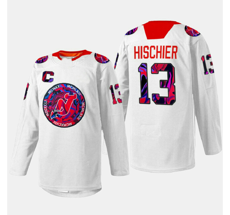 - Nico Hischier Devils Gender Equality Night 2022 White #13 Jersey Warm-up