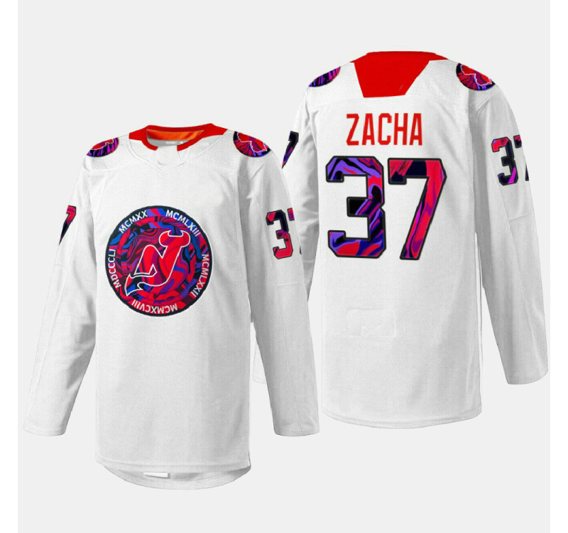 - Pavel Zacha Devils Gender Equality Night 2022 White #37 Jersey Warm-up