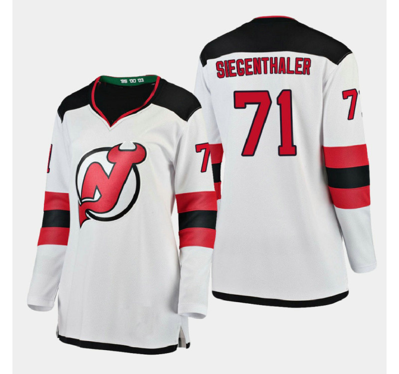 Women New Jersey Devils Jonas Siegenthaler #71 2021 Away White Jersey