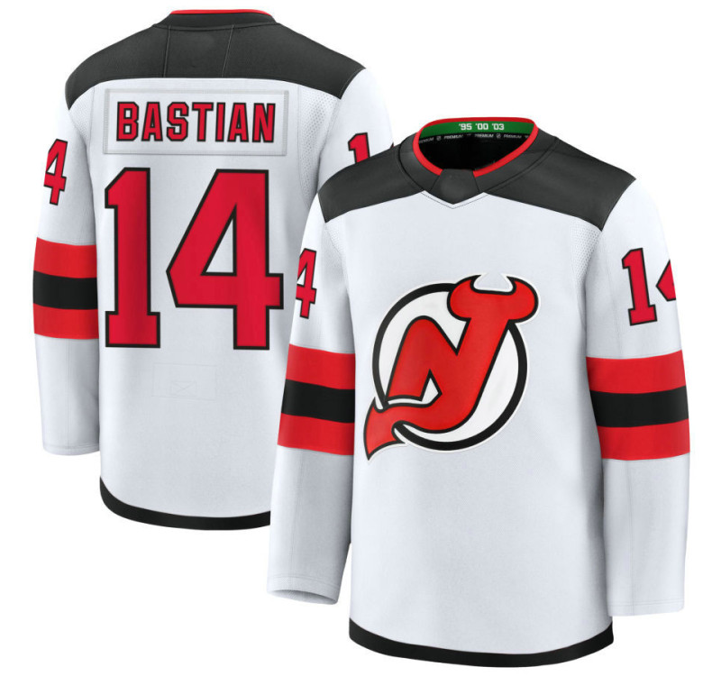 Upgrade your Youth New Jersey Devils #14 Nathan Bastian Away Premium White Jersey, meticulously crafted to mirror the team's on-ice intensity. This premium design features bold striping and crisp team branding, echoing the player iconic ice uniforms. Engineered with breathable mesh panels and a streamlined silhouette, it balances lightweight comfort and a modern fit, keeping you cool during high-stakes moments. Whether rallying at the Prudential Center or celebrating at home, this jersey blends authentic style and performance to fuel your loyalty in every cheer.